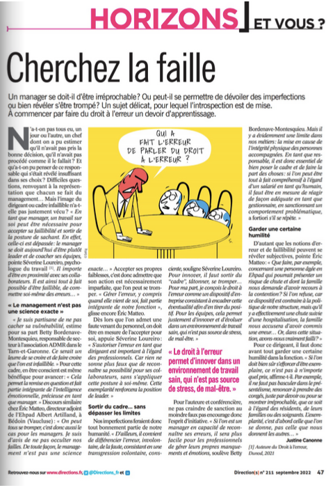 Être dans une démarche de droit à l’erreur, c’est choisir d’en faire un devoir d’apprentissage, et un levier d’innovation en libérant ses collaborateurs de contraintes bloquant la confiance et la créativité. Alors, pourquoi hésiter, comment dépasser ses résistances ? Car, il faut l’accepter, il n’existe aucun moyen d’éviter les erreurs en entreprise !